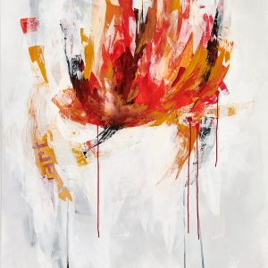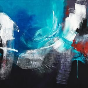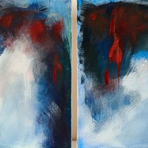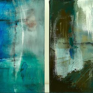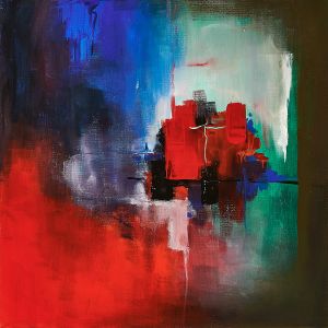 mit Acryl auf Leinwand und Papier. Jedes Bild von mir ist eine Geschichte, ein erlebter Teil von mir.